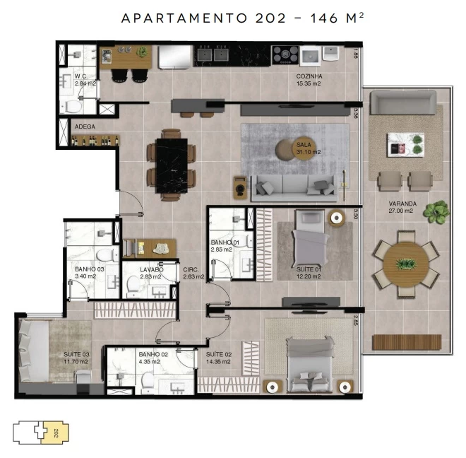 para uma festa ou um jantar delicioso. Além disso, cada morador terá uma adega